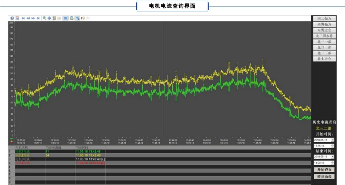 (4)在上位機上,可以選擇時間段查詢選定設備的電機電流及電機溫度,數據以曲線視圖形式顯示,便于管理者與設定值比較,快速判斷電機近期的運行狀態。曲線可以導出,格式為Microsoft OneNote。