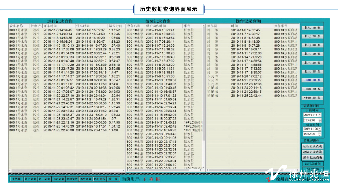 (3)記錄水泵的故障信息,并支持查詢一年的設備故障信息。