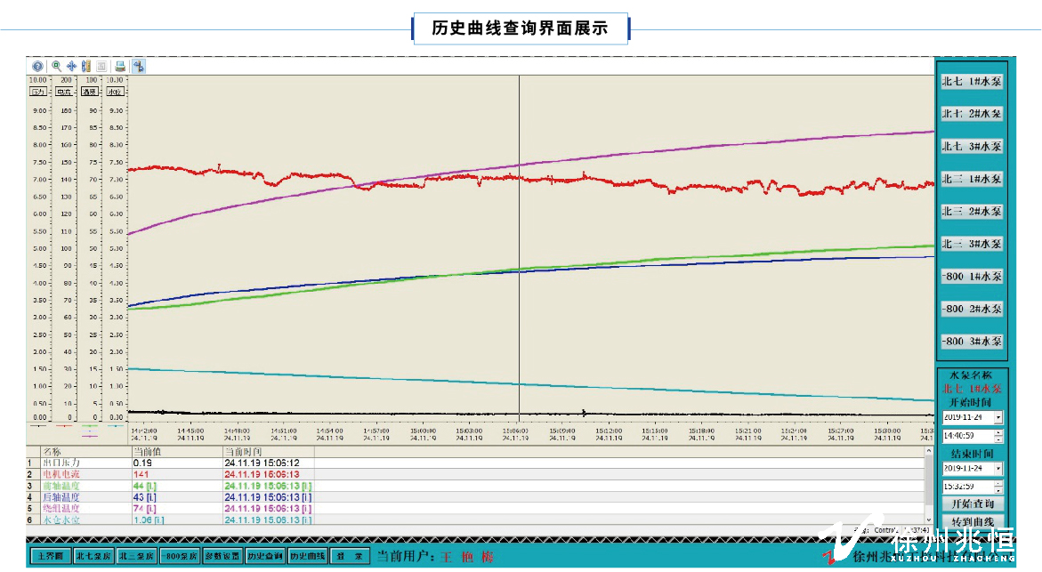 (2)記錄和查詢電機電流、水倉水位實時數據曲線,便于數據分析。